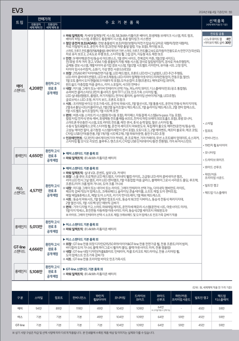 EV3 가격 떳네요