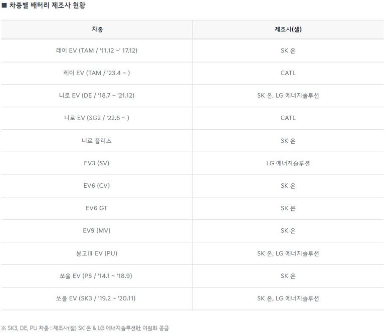 기아 전기차 배터리 제조사 - 출처 :