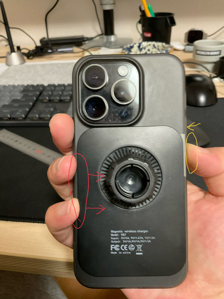 아.. 아뇨.. 그냥 맥세이프 충전기인데 떼실때 교차해서 떼야 차나 설치되어있는 용품에 데미지가 없다는 내용입니다