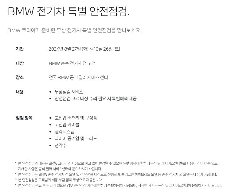BMW 전기차 특별 안전점검 캠페인 (~10/26까지)