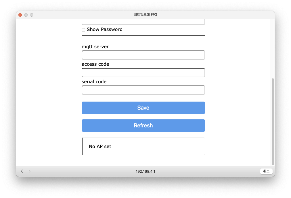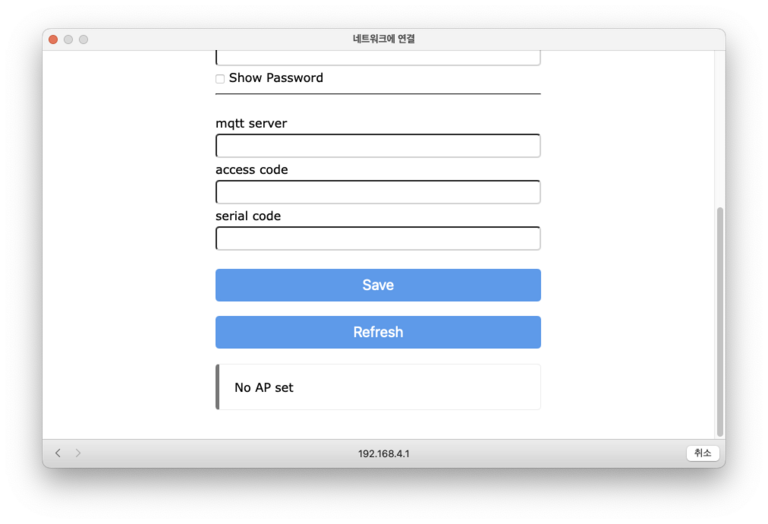 해주는 김에 3D 프린터 IP 와 억세스코드 시리얼넘버 까지 받아서