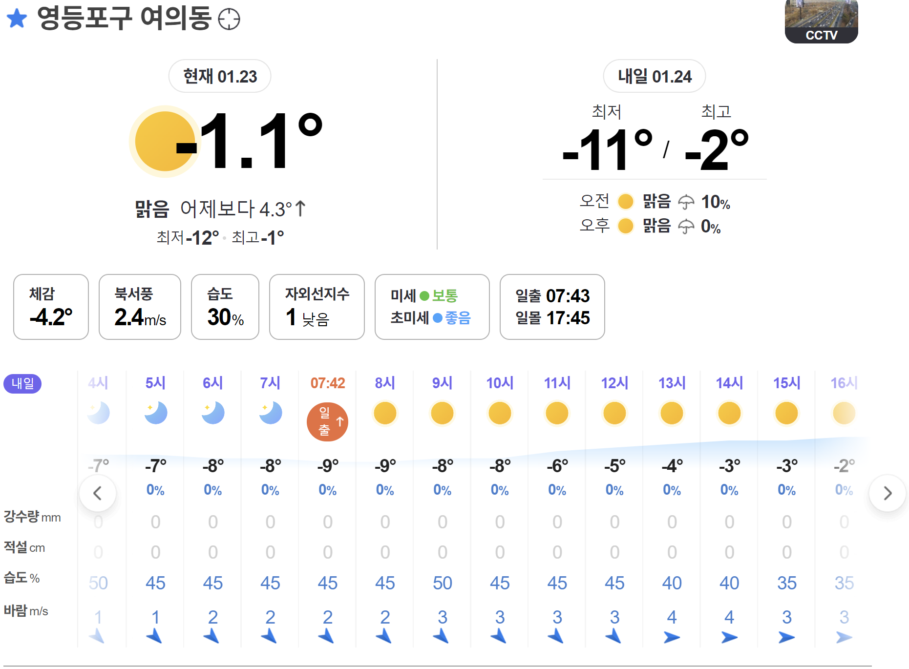 내일 아침 여의도 날씨입니다.