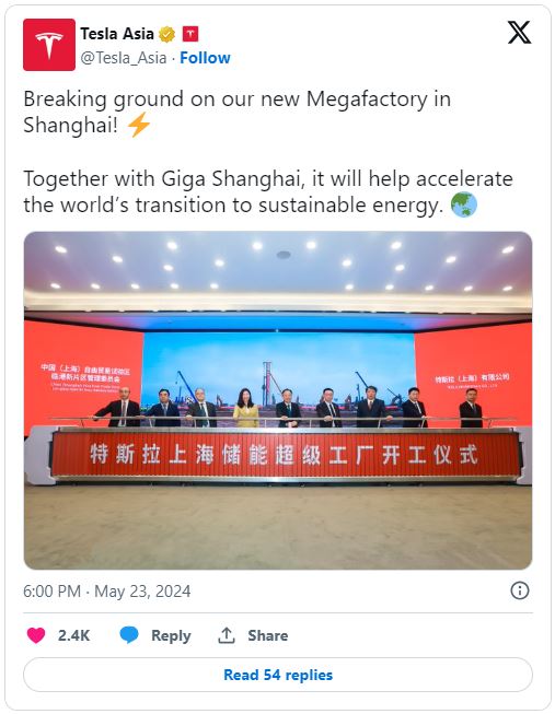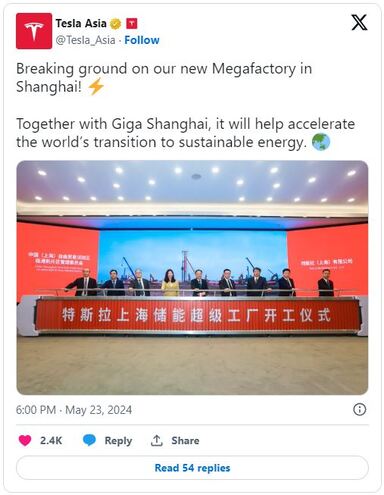 테슬라는 중국 상하이에 메가팩토리 상하이 (기가 상하이) 착공을 시작했습니다.